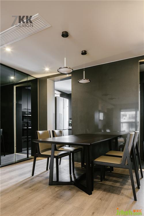 餐廳簡(jiǎn)約造型的吊燈、深巧克力色餐桌與大理石瓷磚背景的搭配上海裝修設(shè)計(jì),使這個(gè)用餐空間更加的高級(jí)時(shí)尚,簡(jiǎn)約中透露著精致。