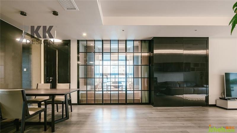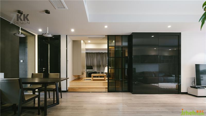大面積的彩狀塊玻璃移門,暖色系的輕輕碰撞,給深沉穩(wěn)重的空間帶來一種不一樣的活躍氣氛。