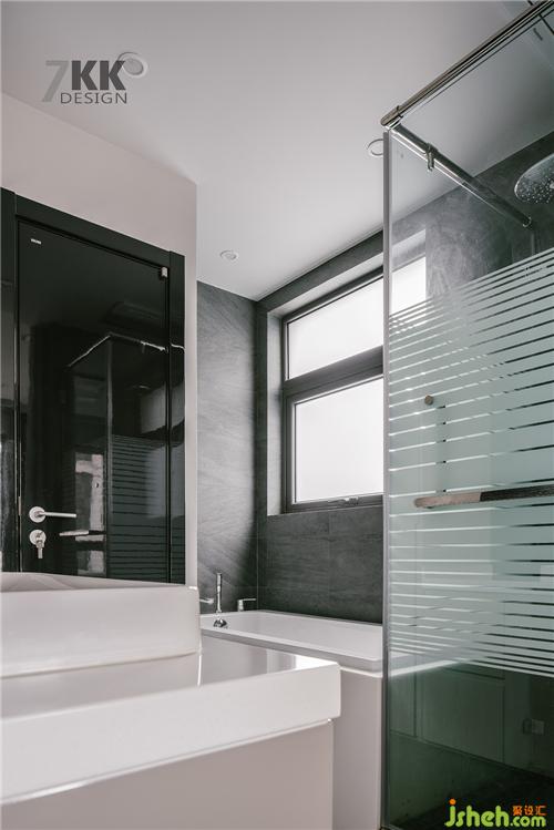 衛(wèi)生間,灰色墻磚,白色浴缸,簡(jiǎn)單的顏色搭配,大氣時(shí)尚的衛(wèi)浴空間。