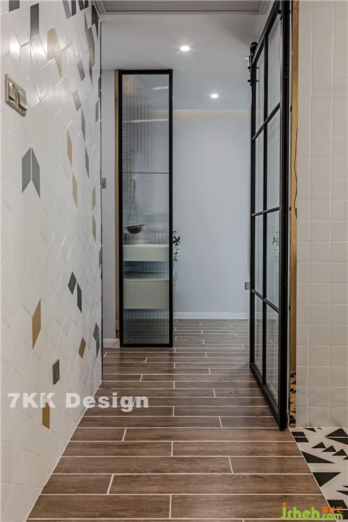 走廊直通衛(wèi)生間、臥室、廚房。通過干區(qū)的透明隔斷以及廚房透明谷倉門所照射進(jìn)來的自然光上海室內(nèi)設(shè)計(jì)師,增加了整個走廊的采光度。