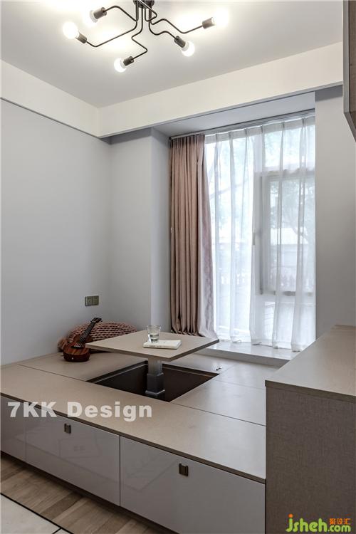 次臥的亮點(diǎn)在于,可以在會客室榻榻米和床之間隨意切換,下方的抽屜也滿足了業(yè)主需要收納空間的訴求。 也可以找那么一個寧靜的下午,慵懶的窩在榻榻米上,一點(diǎn)輕音樂,一杯咖啡,一本書,逃離喧囂,擺脫束縛,偷得浮生半日閑。