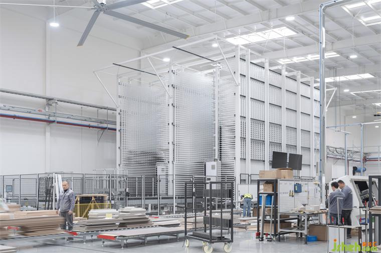 The outdoor materials' color tones extend to the exterior walls of the production plant. Vertical gradients provide visual rhythm to the horizontal volumes and integrate with window treatments. Skylights are extensively used for illumination inside the factory, where production lines operate in an almost dust-free environment. The landscape design is based on the concept of a sponge city, utilizing natural rainwater infiltration. Large water features and undulating ground landscapes break the monotony of the site. A significant number of trees are planted on the south side of the building. Over time, these trees will grow, providing shade for the parking area and visual buffering for the main facade of the research center.