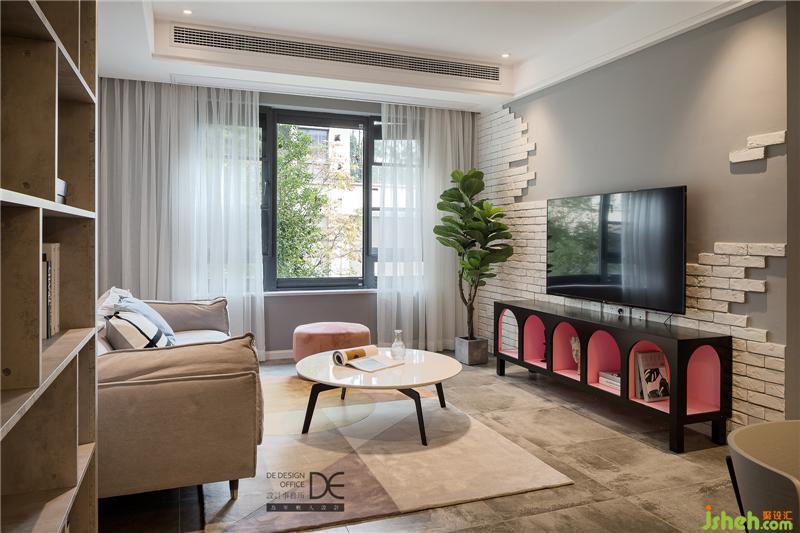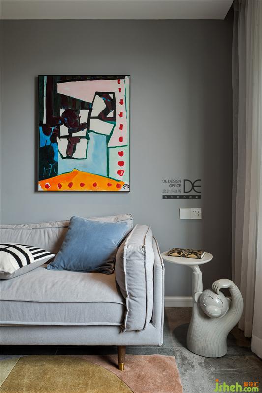 客廳的色彩以灰色為主基調(diào),輔之少量的綠植、粉色、橘黃、玫瑰紅,讓整個(gè)空間安靜而不寡淡,反之更具生趣。