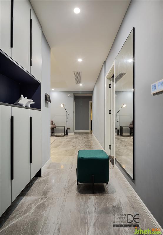 玄關(guān)處鞋柜的改造是一個(gè)亮點(diǎn)。在處理玄關(guān)鞋柜的時(shí)候,涉及到廚房開(kāi)門(mén)方向的問(wèn)題,留有兩個(gè)門(mén)洞的廚房,封門(mén)洞和留門(mén)洞是設(shè)計(jì)師和業(yè)主比較糾結(jié)的地方。最后他們選擇封掉了玄關(guān)的門(mén)洞,這樣既保留了進(jìn)門(mén)的整體性,同時(shí)也留出鞋柜的位置,增加了實(shí)用性。