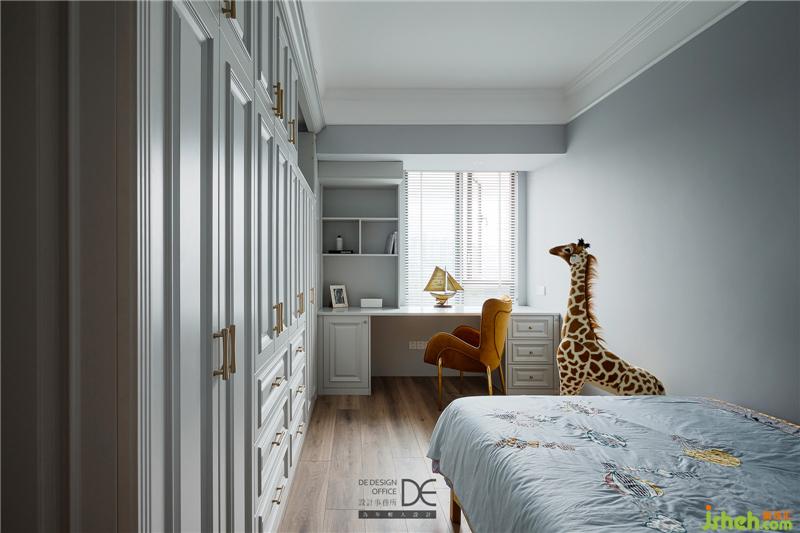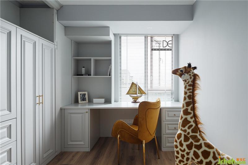 哥哥的房間延續(xù)睡眠空間的柔和感,云朵床和動(dòng)物元素增加了空間的童趣,心愛(ài)的動(dòng)物們相伴左右,共同制造著男孩輕快的童年,有趣的長(zhǎng)頸鹿擺件更是成了空間的亮點(diǎn)。