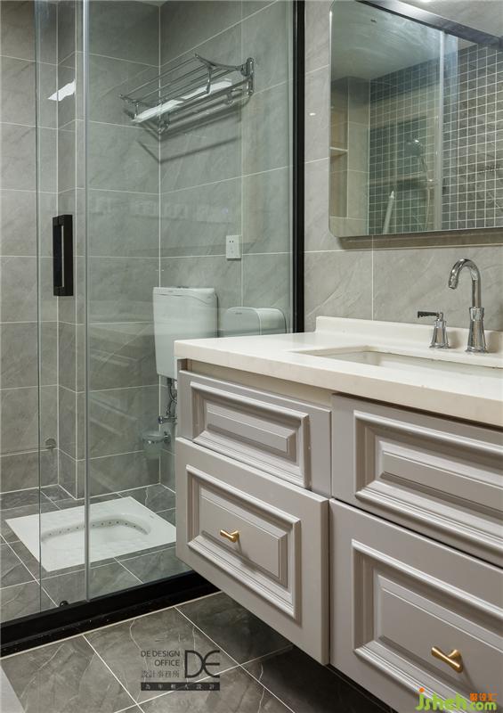 衛(wèi)浴空間整體感受和諧而淡雅,些許金屬元素更顯精致,浪漫之感毫不遜色。