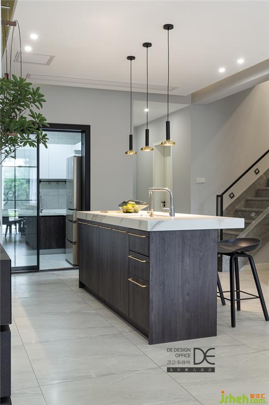 娟姐先生對設(shè)計師提出的唯一要求就是餐廚空間要滿足川菜制作條件和朋友間美食互動的條件。老薛將中廚空間+西廚空間+餐廳空間一字排開,完美滿足了男業(yè)主的需求。