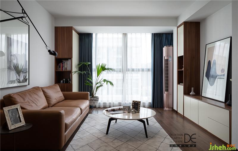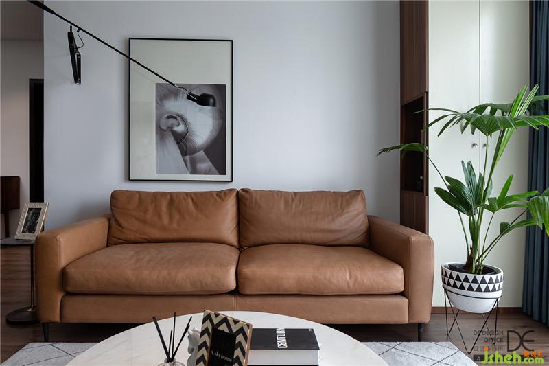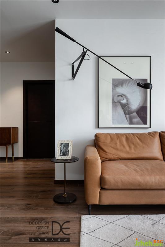 客廳大面積平頂加上點光源設計,配合墻上的搖臂燈,頂上的暗藏燈帶,讓空間的光線更有層次。墻面沒有設計復雜的造型,而是以簡單的家具加以襯托,構(gòu)建了一個安靜和諧的畫面。