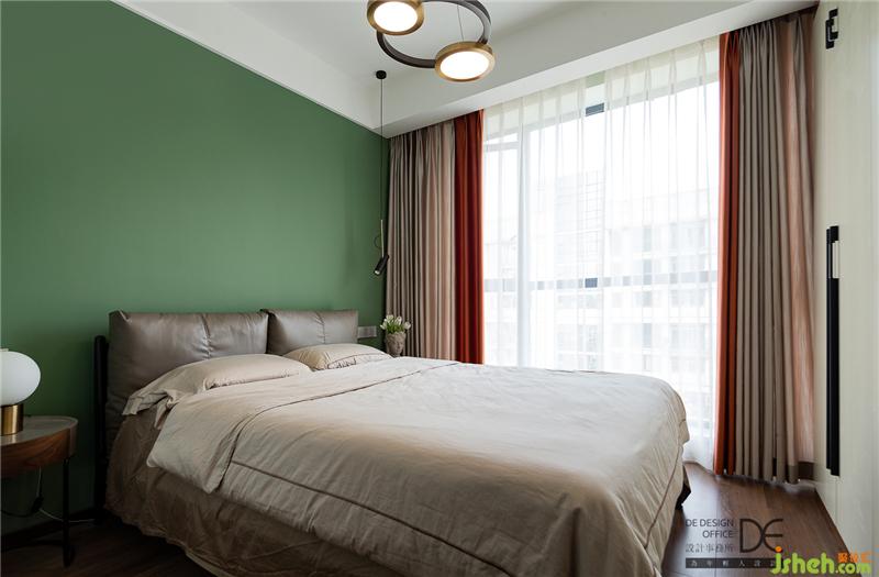 次臥的色彩豐富而不繁復(fù),在大面綠色的襯托下,窗簾的色彩畫龍點睛,讓整個空間燦爛起來。