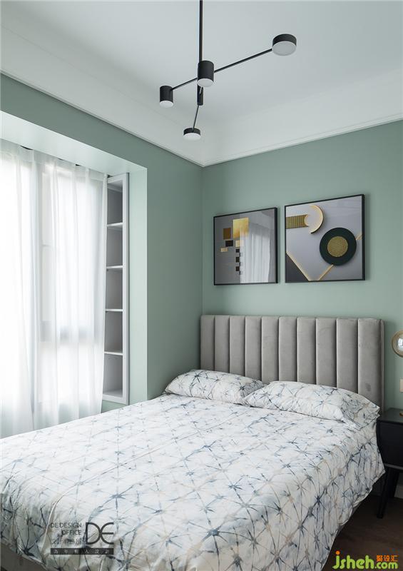 兒子房選用了灰綠作為墻面的主體色,這個(gè)顏色不僅養(yǎng)眼,可以保護(hù)視力,而且耐看、沉穩(wěn),很適合男孩子沉著冷靜的性格。