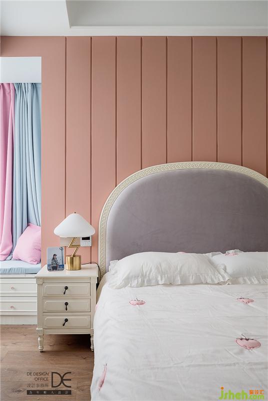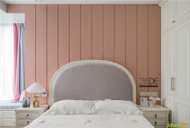 在女兒房的裝修設(shè)計(jì)上,硬裝打底運(yùn)用了當(dāng)下最流行的藕粉色和灰色穿插,床頭背景做了簡單的線條處理,讓整個(gè)空間看起來更立體。搭配上軟裝設(shè)計(jì)師精心挑選的家具和飾品,整個(gè)空間看上去甜美溫馨。