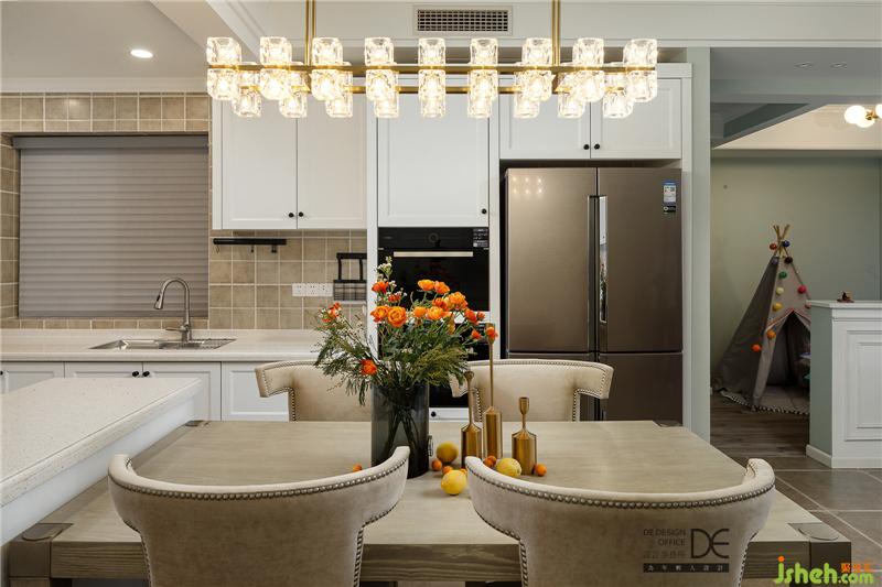 原始餐廳區(qū)域和廚房區(qū)域較小,開放式格局將廚房和餐廳融為一體,餐廳空間也變得寬敞了。島臺的加入讓整個廚房轉(zhuǎn)換得更加靈活,畢竟有島臺的餐廳才是完美的,共進(jìn)晚餐時也多了一些儀式感。