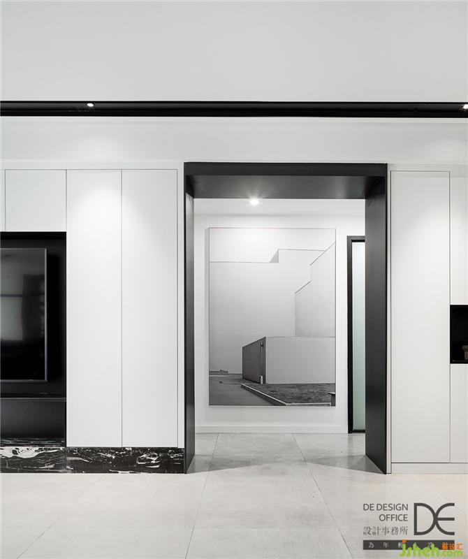 入戶運用拉絲不銹鋼完美收口,回家打開門即可看到1.5*2米的裝飾畫,眼睛也會不自覺地在這里多停留一會兒。