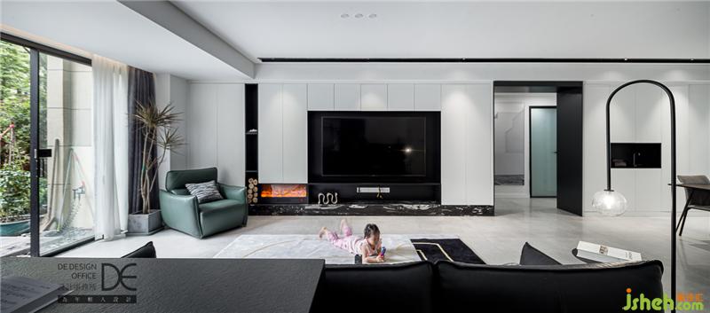 考慮到家里有小朋友,收納也已足夠,于是取消了常規(guī)的茶幾,擺上地毯,給小朋友和大朋友打造一個安全又寬敞的活動玩??臻g。