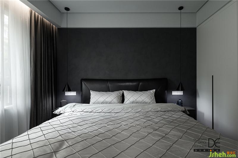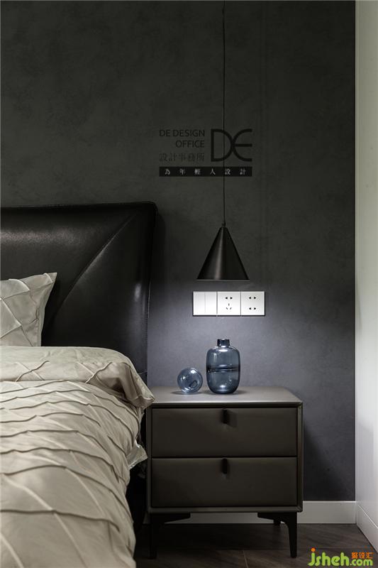 臥室深灰質感漆的設計與皮質沙發(fā)的碰撞帶來一種安靜,這樣的空間氛圍,幫助入眠于無形。