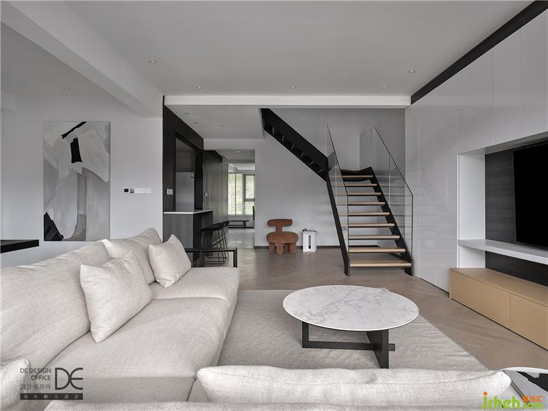 與客廳色調(diào)一致的樓梯,和電視墻一起構(gòu)成了一處景觀。樓梯下的小角落是孩子歡笑的小天地。