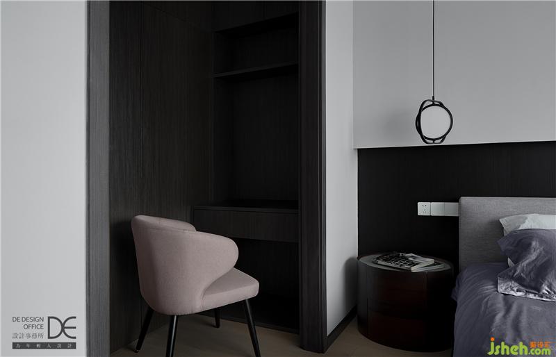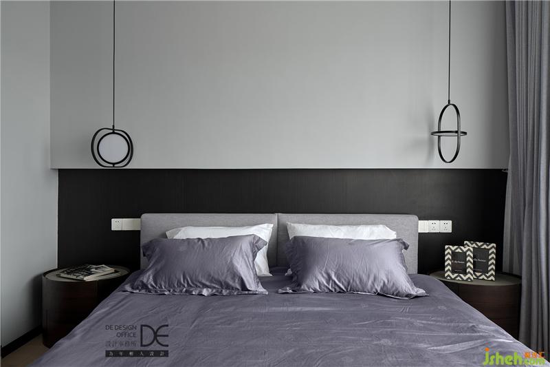 主臥以素雅的黑白灰色系布局,簡(jiǎn)單的線面構(gòu)成,烘托典雅與舒適的氛圍。