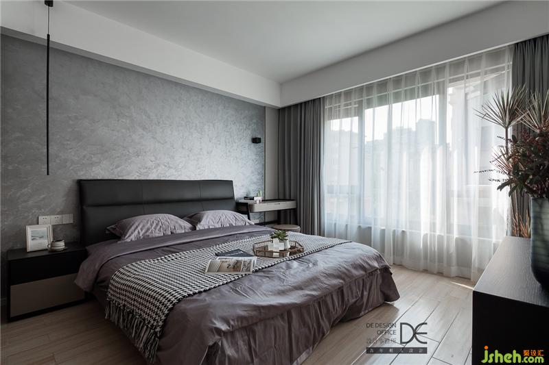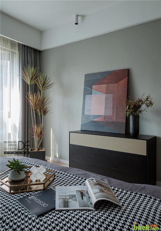 與客廳沙發(fā)墻“同款”的背景墻搭配灰色墻面,擺上頗有藝術(shù)氣息的油畫,整個睡眠空間更富層次感。