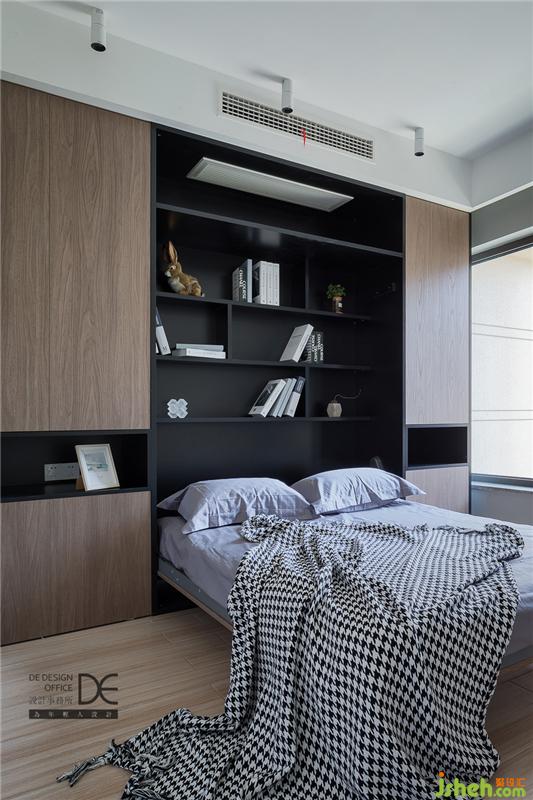 多功能室真正體現(xiàn)了“麻雀雖小五臟俱全”。翻板床的加入,讓這個空間的功能更加豐富。翻板床平時外觀如同衣柜,可以留出更多的活動空間;睡覺時將柜門翻下,就是一張舒服的大床。