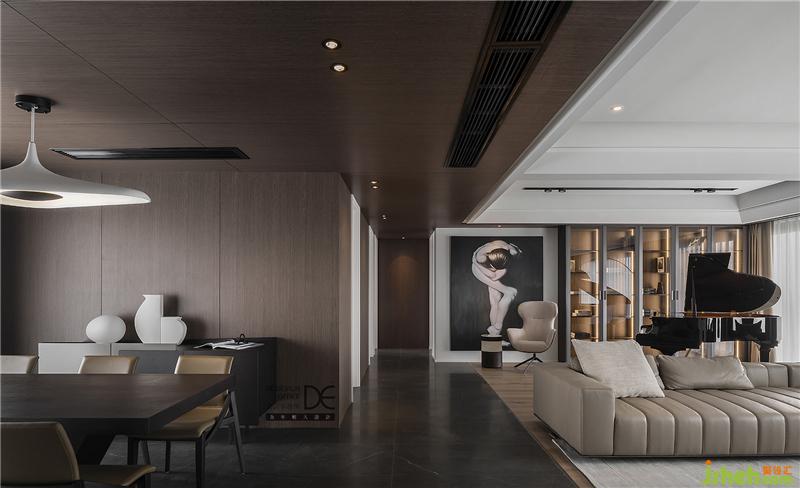 深色木飾面和地磚分割清晰