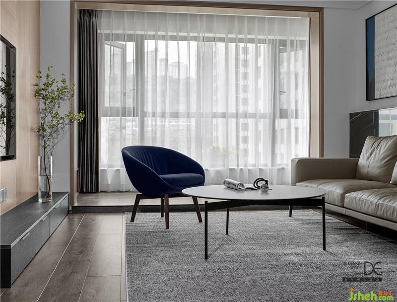 以黑白灰色系為主的客廳在加入藍色單椅和藍色的裝飾畫之后,瞬間靈動跳躍了起來。