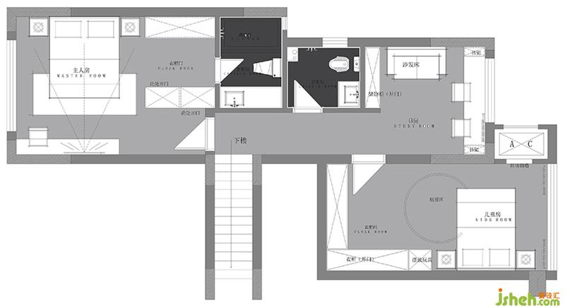 4)二樓需要一個小起居室及書房功能,可以偶爾打個游戲。