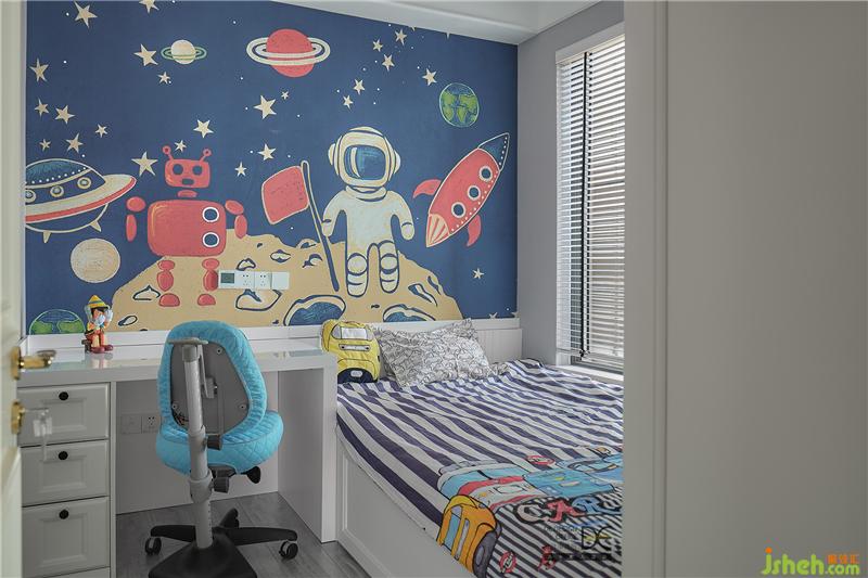 都說妹妹要富養(yǎng),從床到書桌,妹妹房間的東西在造價(jià)上都比哥哥的房間要多出很多。原本狹窄的空間通過壁畫的使用,讓空間從視覺上變得更為寬敞。