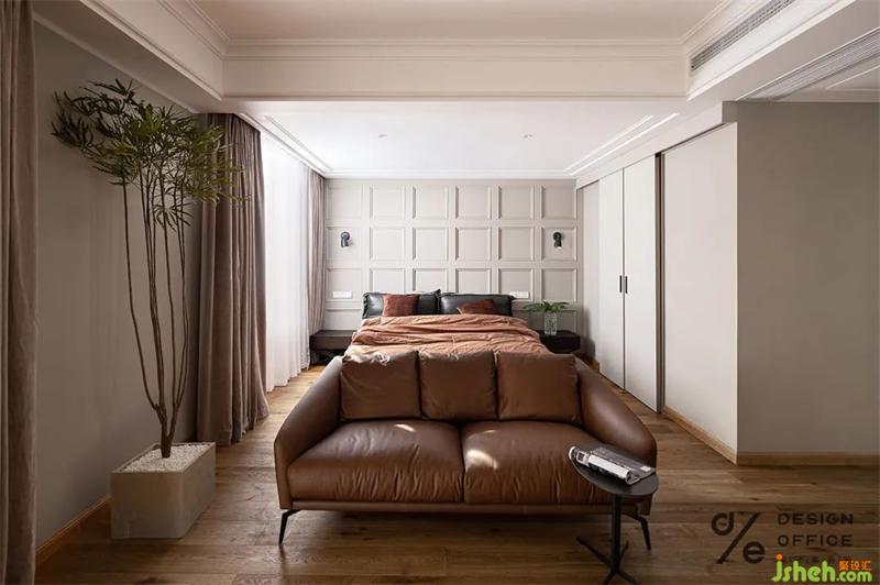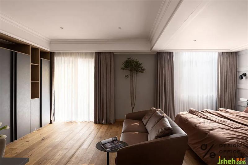 重慶別墅裝飾整體色調(diào)沿用客廳灰色和咖色的搭配,配合原木木地板的質(zhì)感,在保持空間氛圍和諧的同時,又頗具層次感,讓人感覺溫馨且放松。