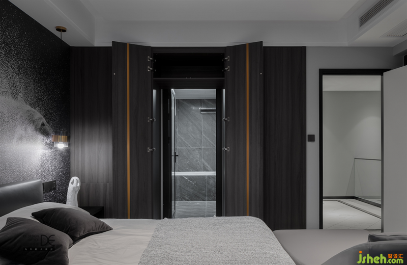 獨立臥室、獨立衣帽間、獨立衛(wèi)生間,形成睡眠區(qū)、衣帽區(qū)、洗浴空間的獨立分割,滿足男主精致有條理的生活習(xí)慣。