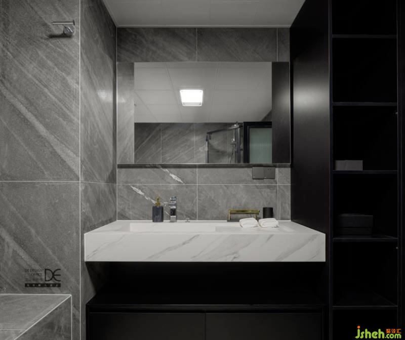 衛(wèi)生間延續(xù)空間的黑白灰調(diào)性,簡單純粹,彰顯空間質(zhì)感,于細節(jié)之處展現(xiàn)美感。