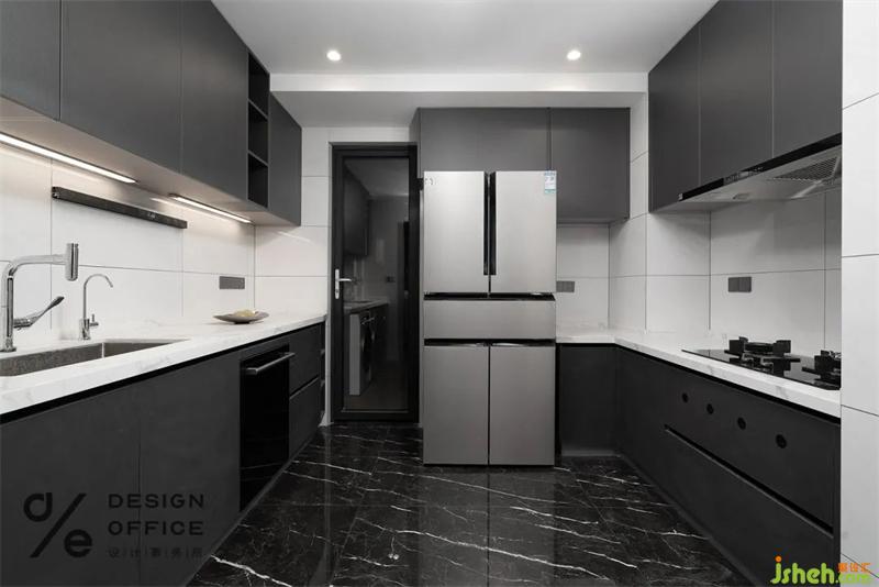 The open kitchen is adjacent to the dining room, and the designer outlines the modern and exquisite life scene with simple layout.
