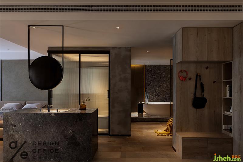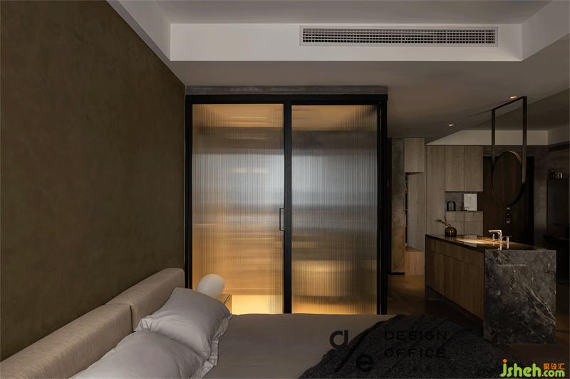 主臥空間不大,但開放式的格局,給予空間舒暢寬松的居住體驗(yàn)。所有的色彩以及材質(zhì)都延續(xù)了公共區(qū)域的元素,甚至是“隱藏式”的柜門都在描繪高級(jí)簡(jiǎn)潔的氛圍。
