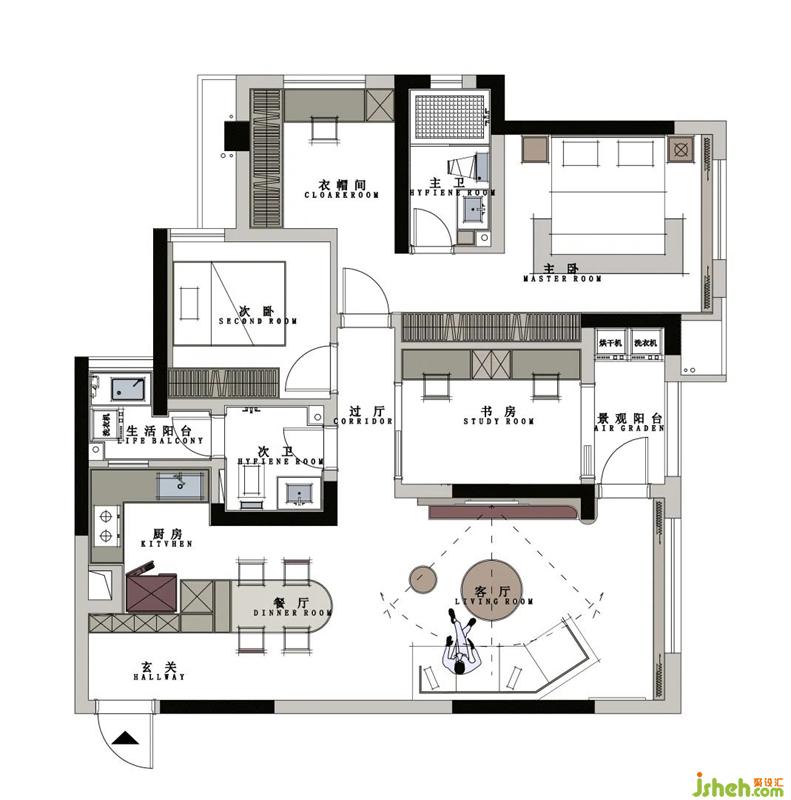 書房滿足男女業(yè)主學(xué)習(xí)需求,書房銜接內(nèi)陽(yáng)臺(tái)主要是給狗狗更多的陪伴空間,在書房學(xué)習(xí)的時(shí)候它可以在陽(yáng)臺(tái)曬曬太陽(yáng)。