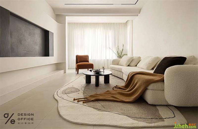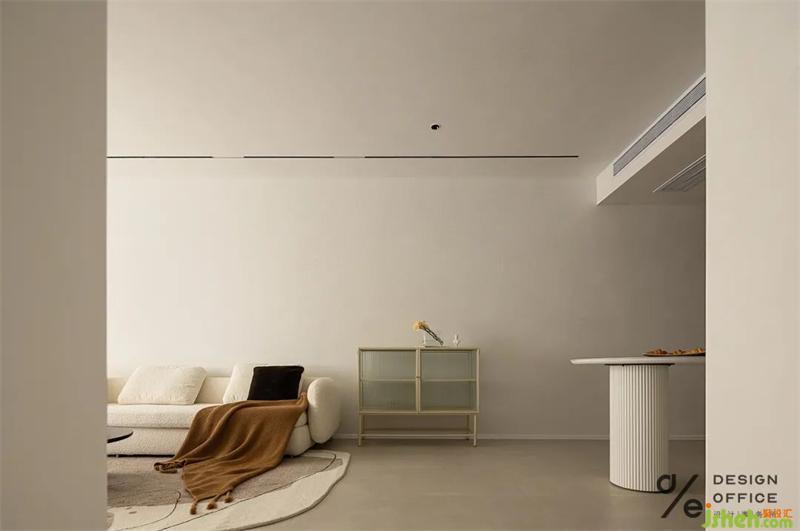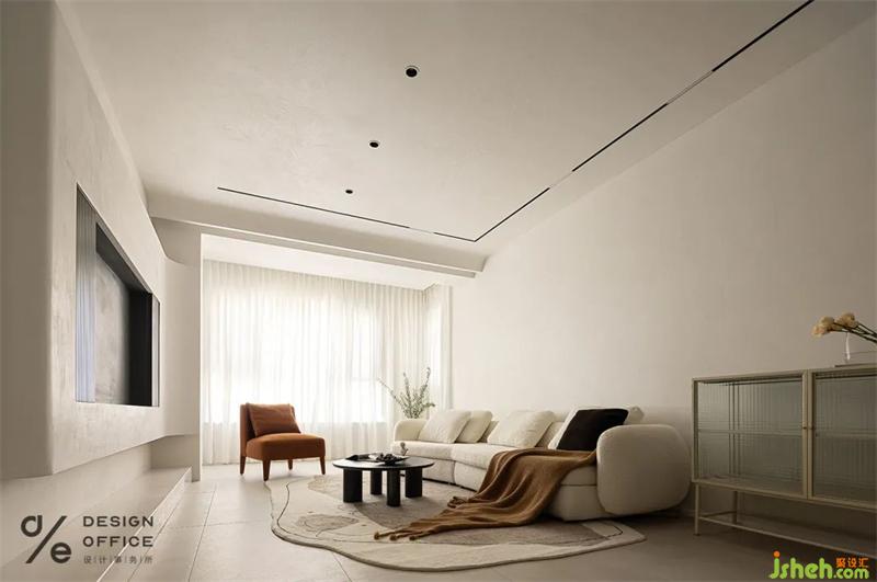 客廳采用無(wú)主燈照明,見光不見燈的設(shè)計(jì)是對(duì)于人最舒適的顧及;米白色為主,是干凈純粹的色調(diào);沒(méi)有過(guò)多的裝飾,只是將棕色和灰色穿插在空間中。