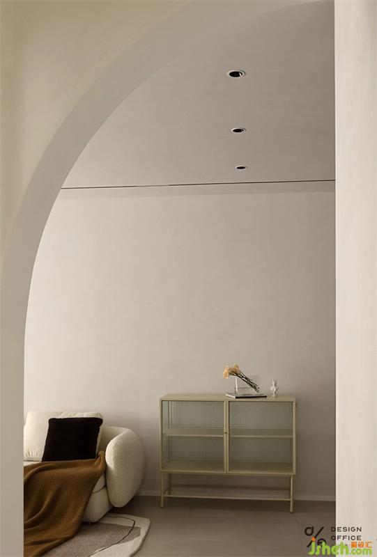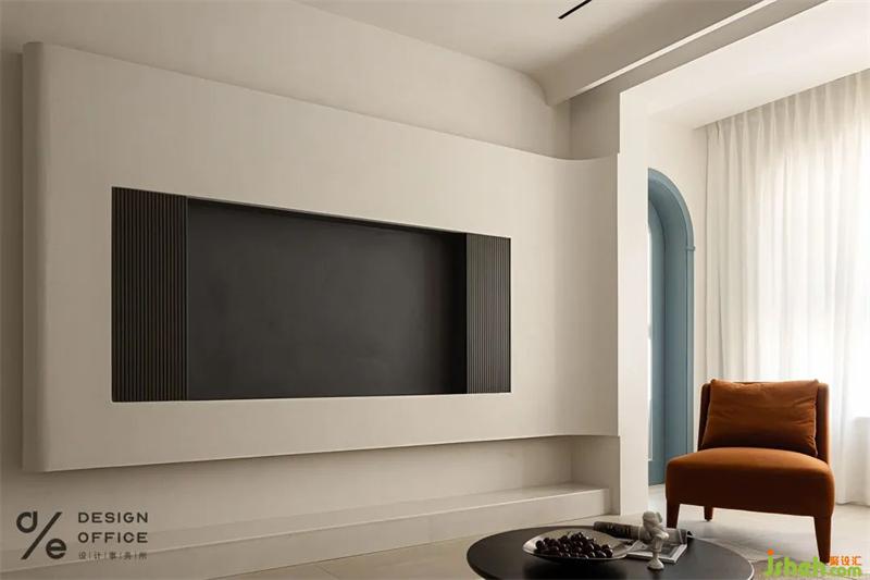 電視墻的半圓弧,實(shí)際是為了業(yè)主使用開關(guān)的時(shí)候空間感更好,弧形與直角穿插,讓空間生動(dòng)不沉悶。