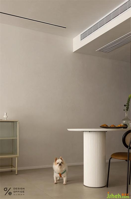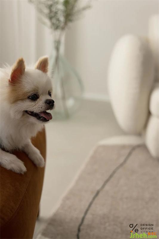 整個(gè)軟裝色彩搭配,餐椅和單椅同色系的選擇,在奶色系上加了一些撞色,是整個(gè)空間統(tǒng)一而又有樂趣。簡約而又不失趣味,增加了空間視覺靈動(dòng)感。
