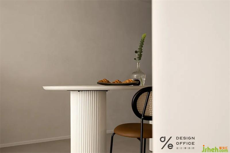 圓潤的餐桌傳達(dá)出相聚的指示,透過窗簾光影恣意流轉(zhuǎn);這里不僅是一家人的三餐之所,更是溫柔的相聚時(shí)光。