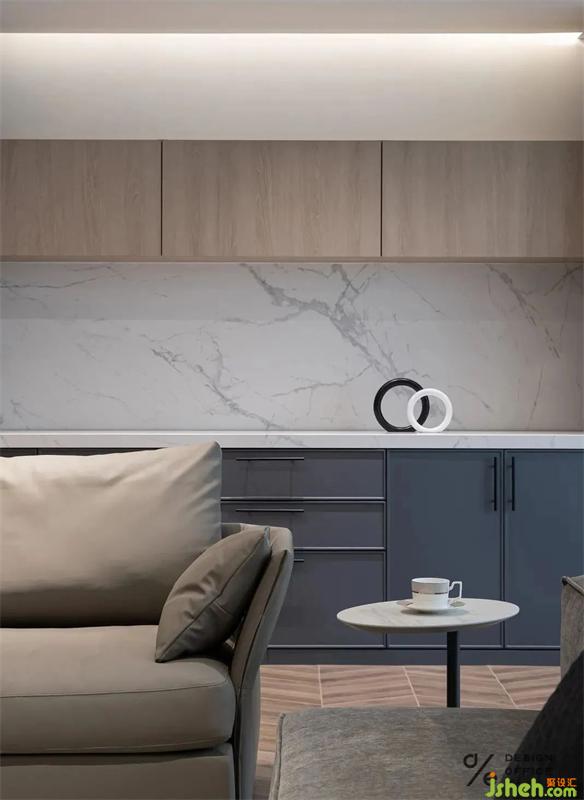 中西廚的結合,可以有效的減少廚房在不同時間段可能出現(xiàn)交叉使用時的尷尬。同時也給業(yè)主帶來了更便捷、舒適的體驗??蛷d餐廳背靠背沙發(fā)的加入讓整個空間更融洽了。