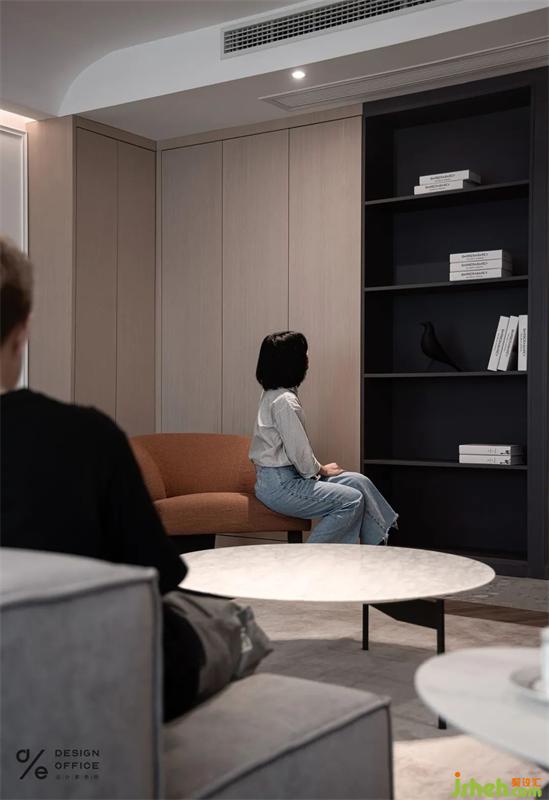 頂面弧形過度到墻面,家居裝修設計同時燈帶的加入讓整個墻頂面若即若離的感覺,形成很強的層次感。