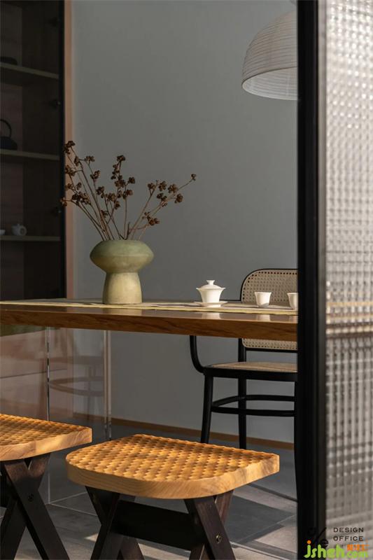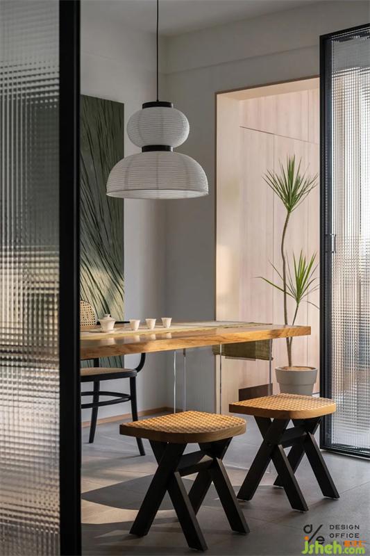 多功能室用折疊門隔斷,形成半開放式空間,既能封閉起來,形成獨(dú)立安靜的區(qū)域;又能打開與客廳連通,形成橫廳結(jié)構(gòu)。