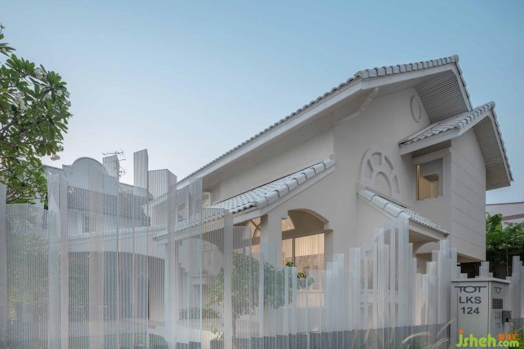 當(dāng)訪客接近建筑時,酒店設(shè)計以皺折且綿延不斷的穿孔鋁板,巧妙隔離外部雜亂環(huán)境,并最大化在穿孔鋁板上開洞,在視覺上呈現(xiàn)出有如自然晨霧般的朦朧建筑美。數(shù)百個高低起伏的穿孔鋁板,不僅替曼谷街道帶來更人性化尺度感,其孔洞更有效過濾多馀的陽光,并引入當(dāng)?shù)丶竟?jié)風(fēng),替內(nèi)部公共空間創(chuàng)造清爽又愉悅的交流場所。