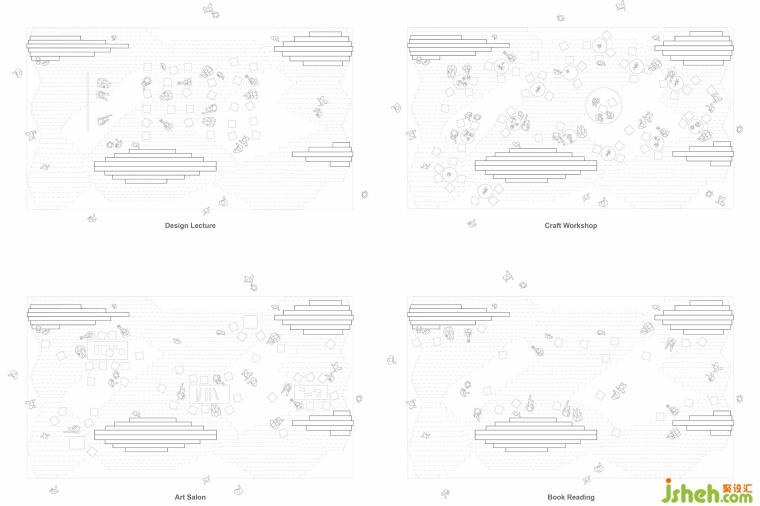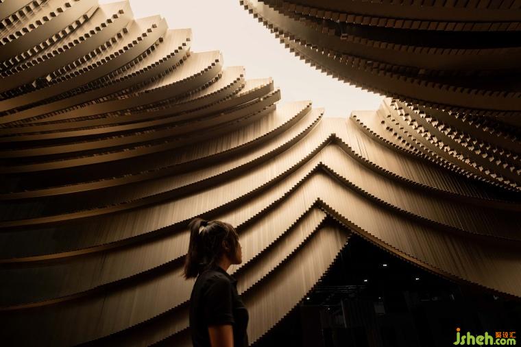 基于這樣的前提,HAS Design and Research建筑事務(wù)所提出了一個(gè)嶄新的設(shè)計(jì),在繁忙且高密度的展會(huì)中,創(chuàng)造一處具有自然印象的山谷洞穴。這個(gè)泰國鋁石窟文創(chuàng)場(chǎng)不僅重現(xiàn)過去泰國人仰賴自然山水所提供住所與生活場(chǎng)景,更反映當(dāng)今曼谷人均綠色開放空間僅有6.99平方米,遠(yuǎn)低于世界衛(wèi)生組織的9平方米。在日常時(shí)段,向上抬升的建筑,制造底層架空的開放空間,一方面創(chuàng)造更多“灰空間”吸引大眾并延伸室內(nèi)外的環(huán)境,另一方面則對(duì)傳統(tǒng)泰式吊腳樓多功能“Tai toon”的呼應(yīng)。到了特殊時(shí)刻,有如山谷的天光照亮整個(gè)空間,不僅提供教育、學(xué)習(xí)、論壇等功能,更讓空間產(chǎn)生一股“非日常性”的儀式感,從而賦予身心靈前所未有的感知體驗(yàn)。