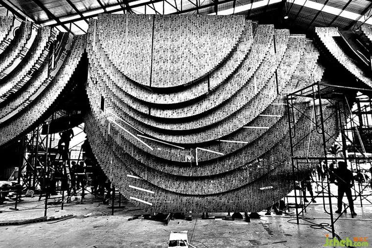 泰國鋁石窟文創(chuàng)場最終由數(shù)十萬根鋁條構(gòu)成整體建筑,設(shè)計(jì)以表皮延續(xù)至空間、空間結(jié)合結(jié)構(gòu)、結(jié)構(gòu)提供多樣化功能之Total-ness Design。這數(shù)十萬根鋁條沒有一根鋁條是相同長度,每一根鋁條都由工匠精心切割制作,并以手工的方式一片片組裝,而這樣的工藝技術(shù),不經(jīng)讓人聯(lián)想起泰國寺廟的精心制作,在當(dāng)今工業(yè)化快速發(fā)展中,泰國鋁石窟文創(chuàng)場以一種非常規(guī)的理念,將傳統(tǒng)與未來整合,讓泰國人重新見到本土工藝的可能性。