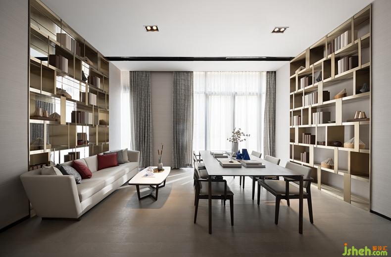 步入書吧區(qū),傳統(tǒng)的折紙手法讓原本陳舊的書籍賦予新的時(shí)尚感和欣賞價(jià)值同時(shí)與釉紅色古典玻璃球搭配組合,給人留下駐足觀賞、思考、休息的空間。
