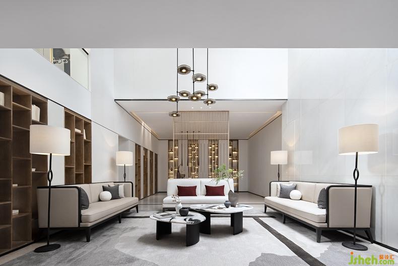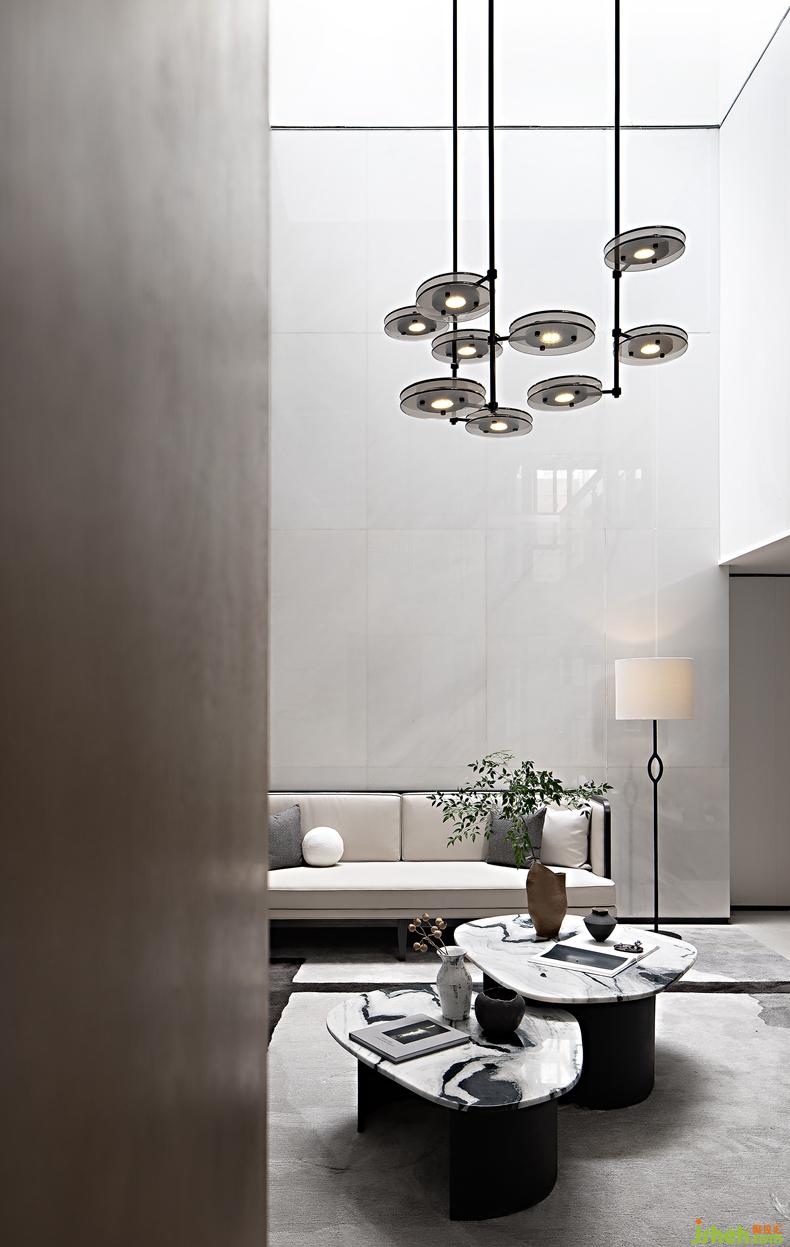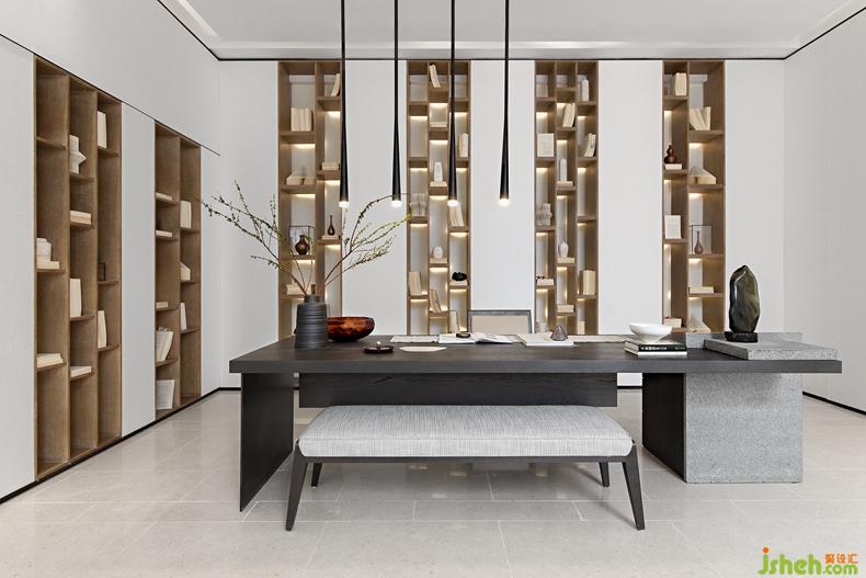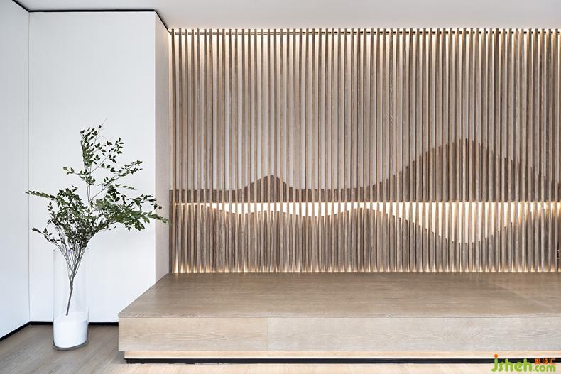 白砂翠竹,亭亭荷葉,水墨山川,空間的色彩與紋理映射著詩意萬象。別墅裝修設計場所的內(nèi)與外,虛與實,靈與雅,意巢設計用如云綿延、如水清幽的詩性塑造,將城市的喧鬧嘈雜在清雅的場景中“自然化”,在詩意日常中消散成云煙。