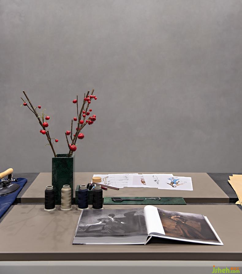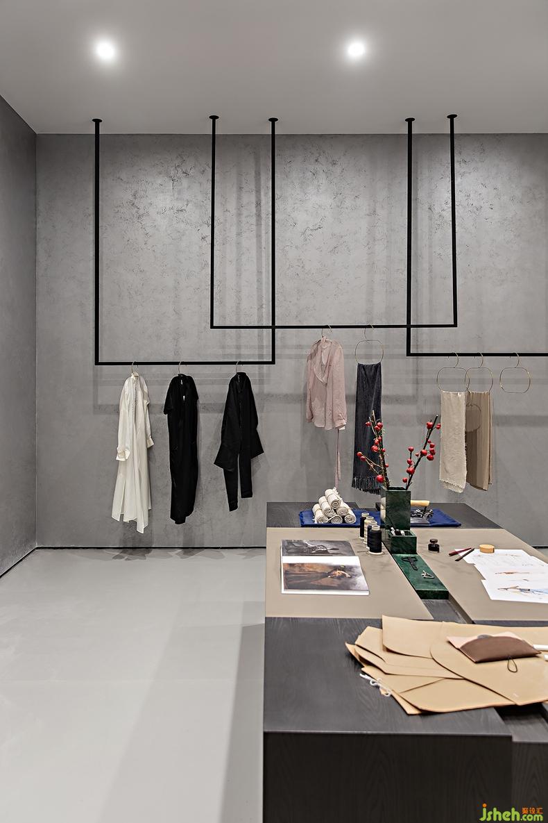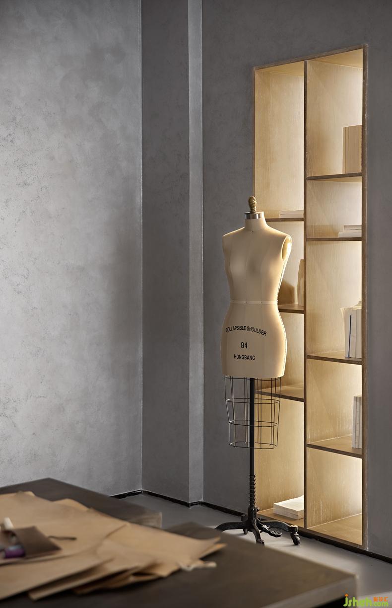特意為女主人設(shè)計(jì)的一間工作室,糅合了現(xiàn)代的極簡(jiǎn)形制與東方的清冽秀氣。一方長(zhǎng)桌與開(kāi)放性的掛衣架構(gòu)設(shè)其中,唯一的點(diǎn)綴是幾枝冬青,空間顯得十分靜寧。