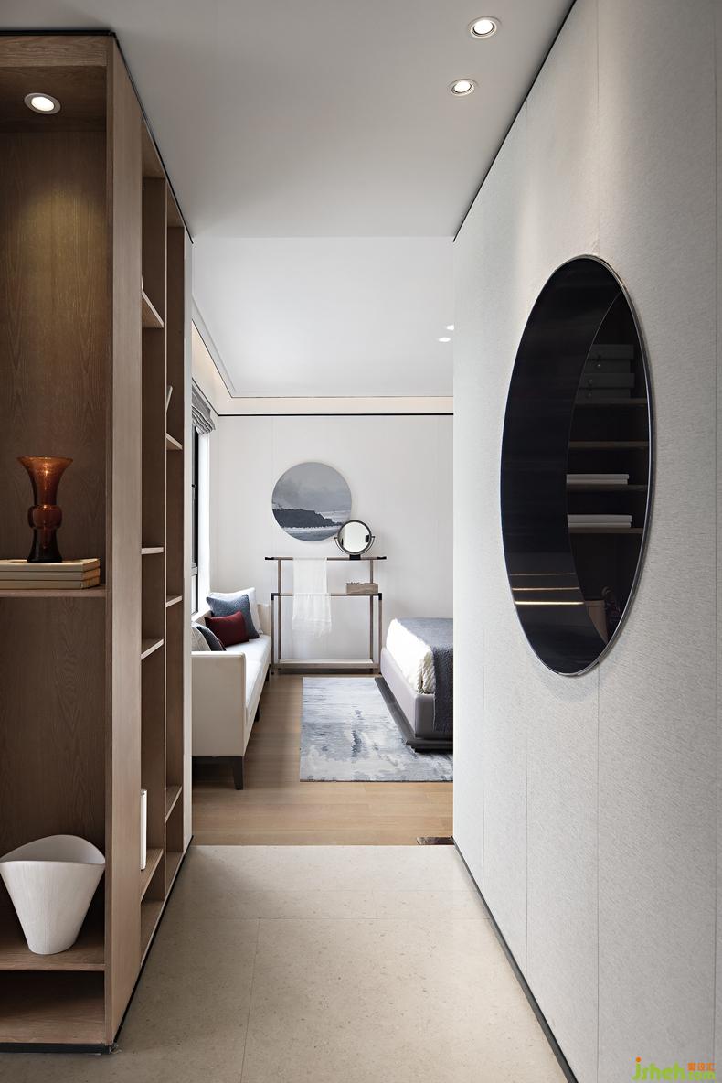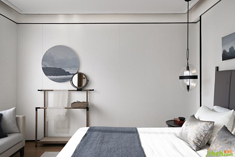 主臥空間是簡(jiǎn)潔質(zhì)樸的設(shè)計(jì),著墨不多,卻在不露聲色中流淌出涓涓禪意。別墅裝修設(shè)計(jì)棉麻、羊毛與木制搭配出細(xì)膩質(zhì)感,帶著濃濃古樸韻味的插花茶具小品修飾著空間,山水的意象在掛畫(huà)與床品上散著詩(shī)意,清透的玻璃透著微爍的光,這個(gè)休憩空間流露著一片素凈淡雅的美。