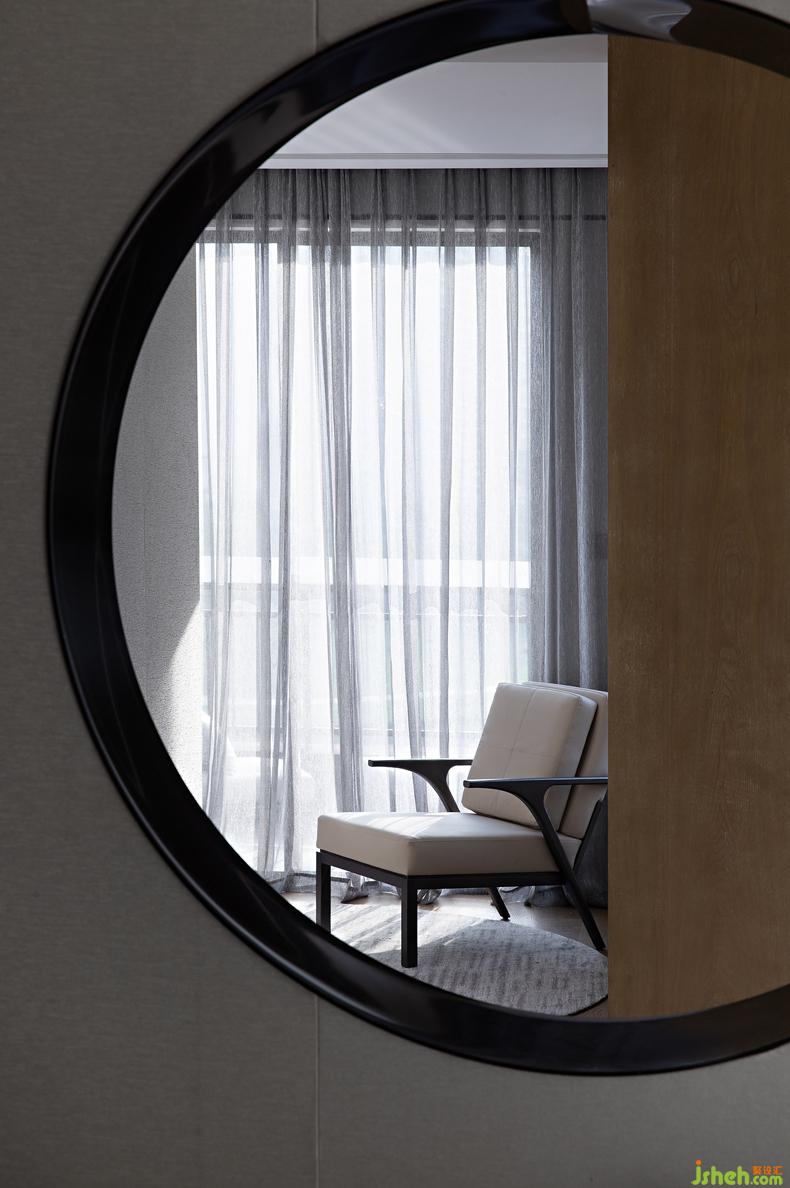 一扇月洞窗引導(dǎo)著室內(nèi)的清氣肆意流通,是空間的區(qū)隔也是鏈接,將內(nèi)外的光景各自框成一幅畫面,靜謐而美好。紗簾作屏,將暖白的光輝分離得細(xì)碎柔軟,有韻律感地跳動著、撫摸著椅背、床褥、白墻……浸漫出一室溫煦的暖意。