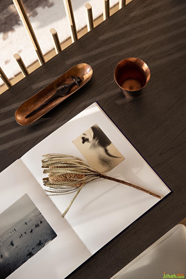 空靈與充實(shí)是藝術(shù)精神的兩元,空間適度的留白營造著平淡素雅的美感,而光影的飽滿感、情感的充盈,使得室內(nèi)的虛與實(shí)相生。室內(nèi)一片光明瑩潔,像在畫境之中,宋代有詩言——“隔簾花葉有輝光”,想必便是這樣的景致了。