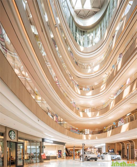 購(gòu)物廣場(chǎng)設(shè)計(jì)塑造一個(gè)天頂?shù)乃h逸意象,結(jié)合水鏡天藍(lán)般的視覺(jué)天空,成為購(gòu)物中心的吸睛點(diǎn)。